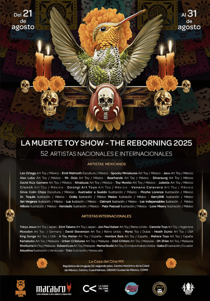 Además habrá otros eventos especiales como la exposición La Muerte Toy Show 2: The Reborning, que reúne juguetes de diseñador e ilustraciones creadas bajo el tema del Día de Muertos. Por otra parte, la reconocida escritora de terror Sandra Becerril se une a las actividades del festival para presentar El carnaval diabólico, su más reciente libro. En esta obra, una escritora acompaña a su amante a un extraño festival donde comienzan a suceder eventos inquietantes, transformaciones físicas indescriptibles y aterradoras alucinaciones.